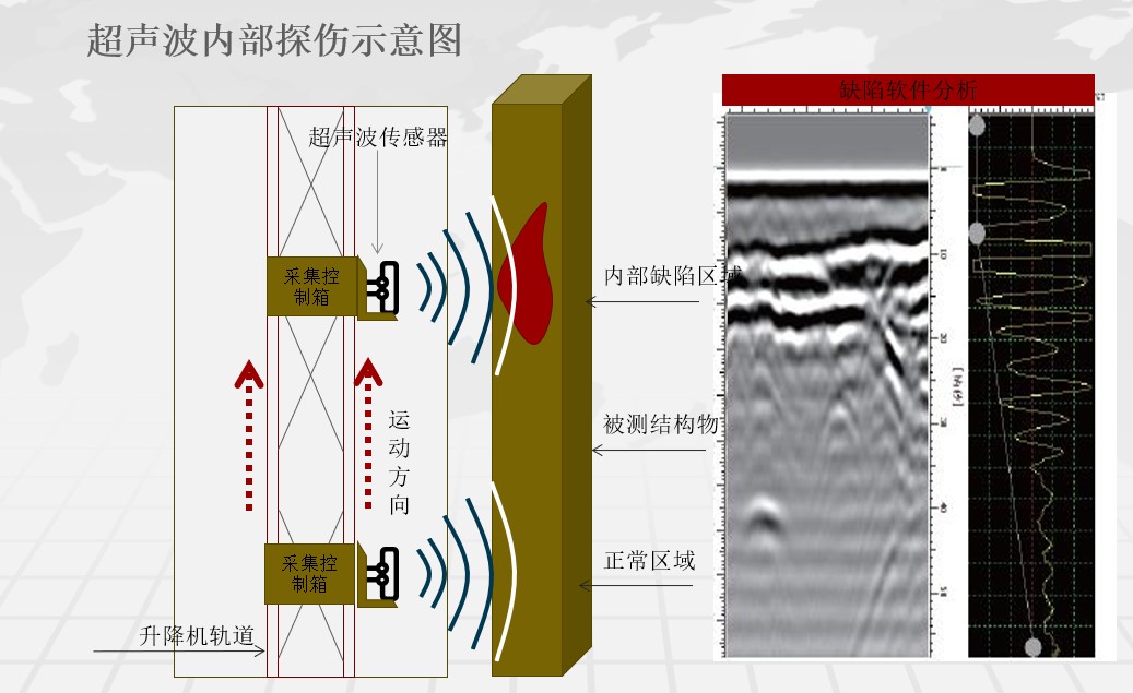 塔內升降機可選配智能化檢測裝置,實現遠程操作對主塔內砼結構、錨索區(qū)等位置進行全自動掃描檢測,自動分析病害位置,大大降低了人工勞動強度,減少了人為因素檢測不到位或不實的情況,實現橋塔后期智能化檢測養(yǎng)護作業(yè)。